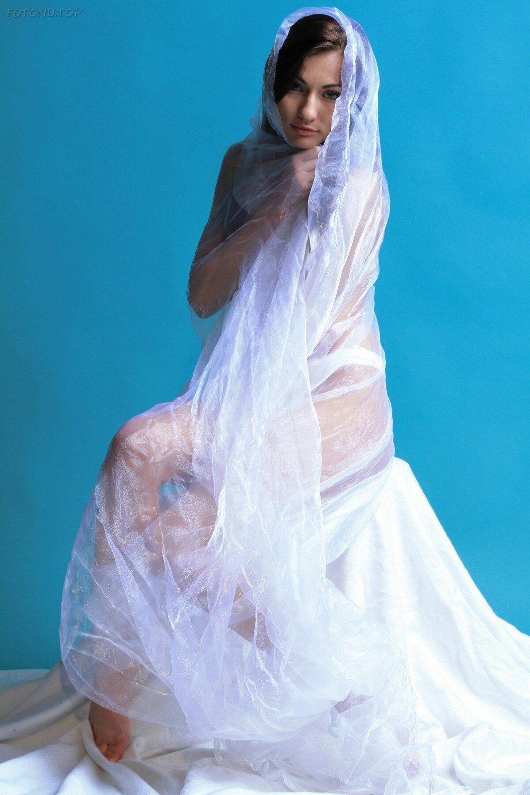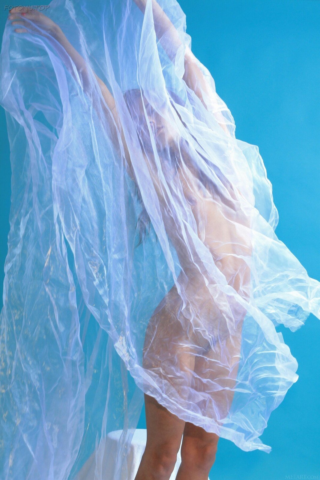 Красивая голая девушка замоталась в тюль